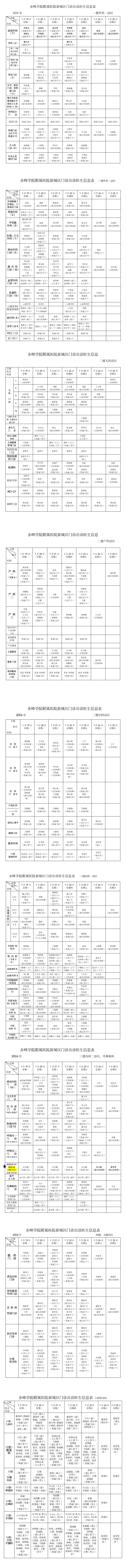 赤峰学院附属医院2026年1月19日-2026年1月25日排班门诊出诊医生信息表