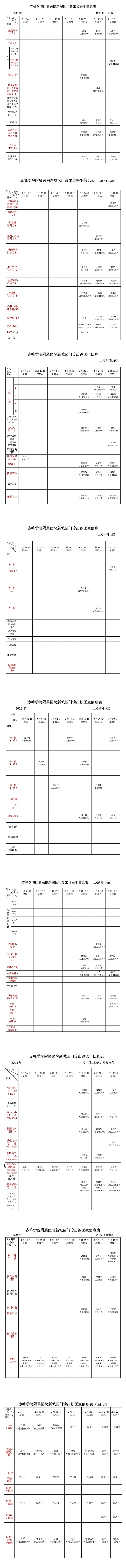 赤峰学院附属医院2026年2月16日-2026年2月22日排班门诊出诊医生信息表